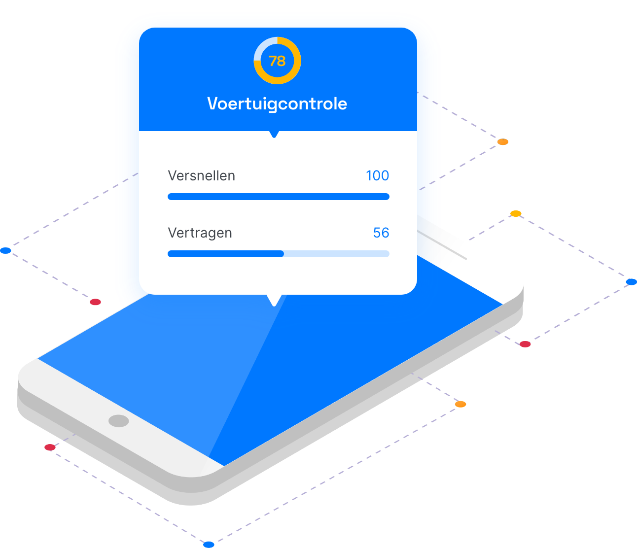 Via de app kan de chauffeur zijn rijgedrag volgen en krijgt hij tips om zijn rijgedrag te verbeteren.